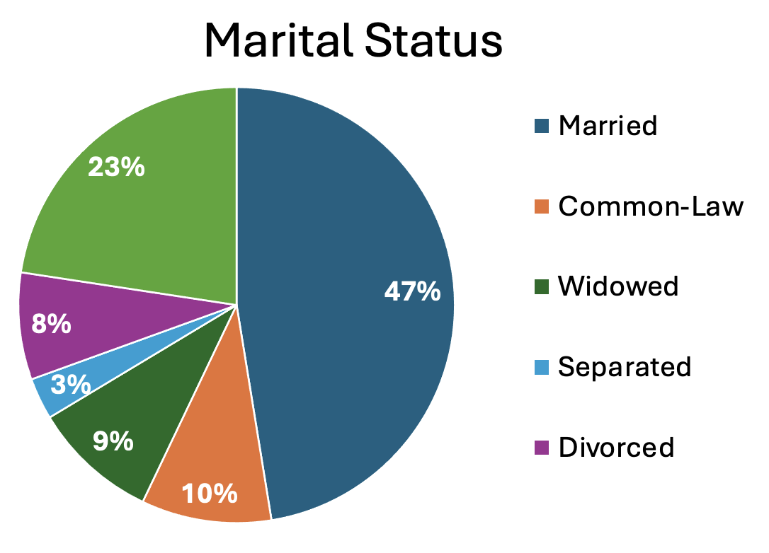 A classic pie chart is useful for representing parts that add up to a whole. This also allows for comparing group sizes. They are often used for demographic variables, with the whole representing the whole sample, or for representing money, with the whole representing a budget or total money spent/made. Be careful to use a pie chart only when it really adds to the story. For instance, if there are only two parts to the whole, a pie chart might not convey much more information. Conversely, if there are many groups, it can become difficult to really see all of them and compare them.