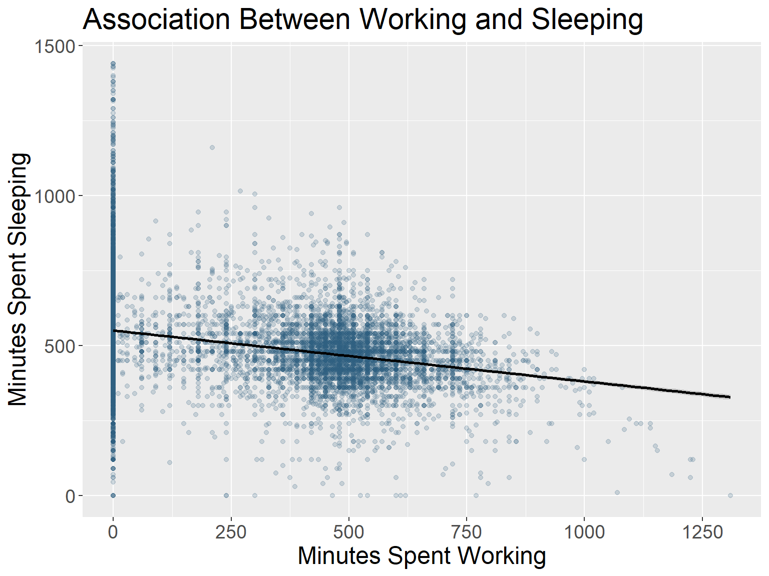 publication-quality ggplot showing the relationship between work time