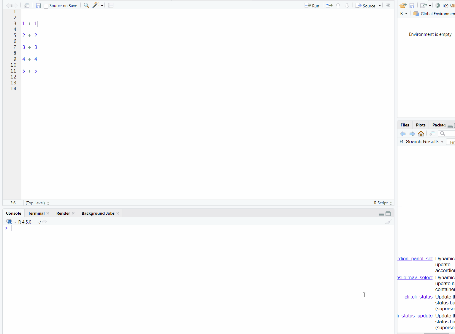 Create your first R script file.