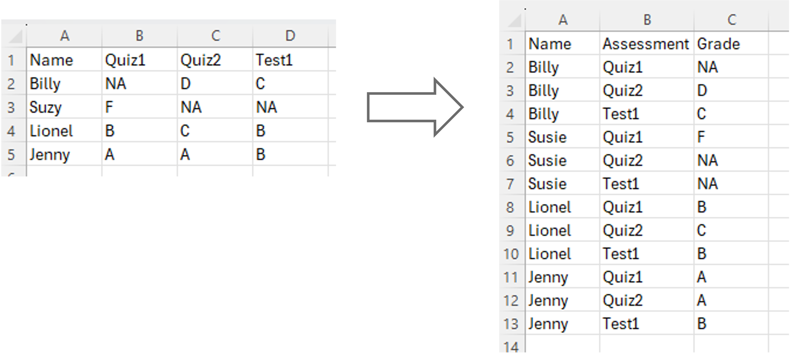As mentioned, there are pros and cons to making data wide and long.